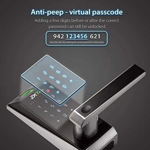 - استخدام الرموز السرية (كود)**: يمكنك إدخال رمز سري عبر لوحة المفاتيح لفتح الباب. تمتاز هذه النظام بخاصية “تمويه الرمز السري” حيث يتم إدخال أرقام عشوائية قبل وبعد الأرقام الصحيحة لزيادة الأمان.