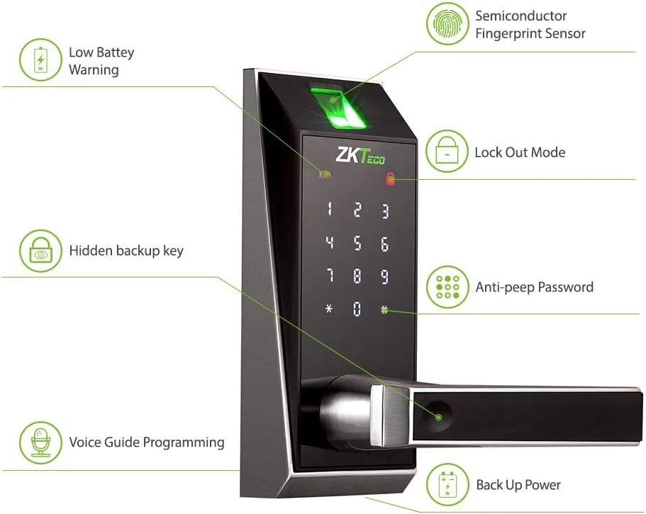 زد كي تيكو AL20DB قفل باب إلكتروني ذكي بتقنية البلوتوث وبصمة الأصابع وشاشة تعمل باللمس من نوع دبل سيليندر.