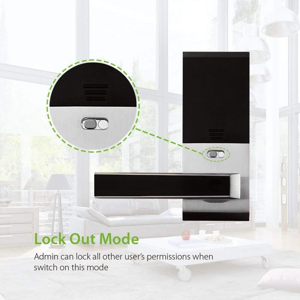 - يعمل قفل الباب الإلكتروني بنظام الأقفال المزدوجة بشكل آلي على قفل الباب بعد دخولك. كما يوفر هذا النظام الأمان المتطور للوصول دون استخدام المفتاح.